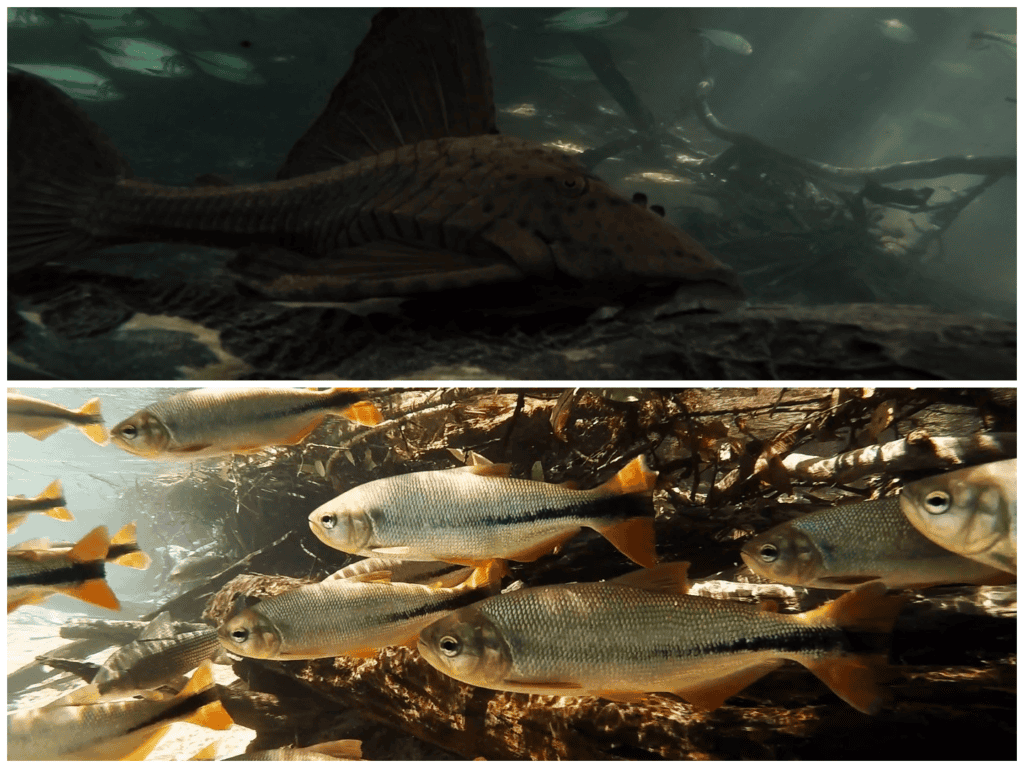 Then there is a school of piraputangas, a fish very common in that area, in the crystal clear waters of Rio Olho d’Água, and a cascudo fish in Rio da Prata.