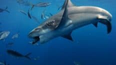 A big male dusky, a curious scalloped hammerhead and a silky shark passing by in this video that I shot while free diving off the coast of Jupiter, Florida